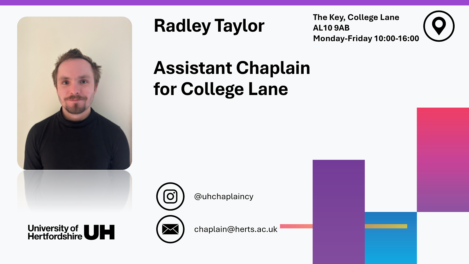 - Radley manages the Key and the Chaplaincy service on the College Lane campus. You can contact Radley in the office 10:00-16:00 Monday-Friday, or on chaplain@herts.ac.uk